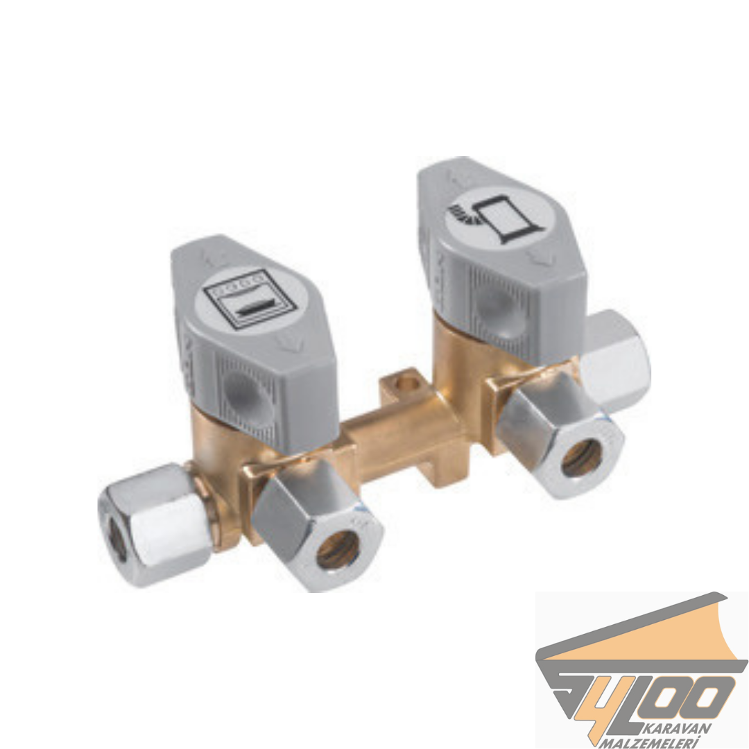 Karavanınızda bulunan farklı LPG’li cihazların her birinin gaz bağlantısı pratik bir şekilde açıp kapatmak için 2’li dağıtım valfini kullanabilirsiniz.